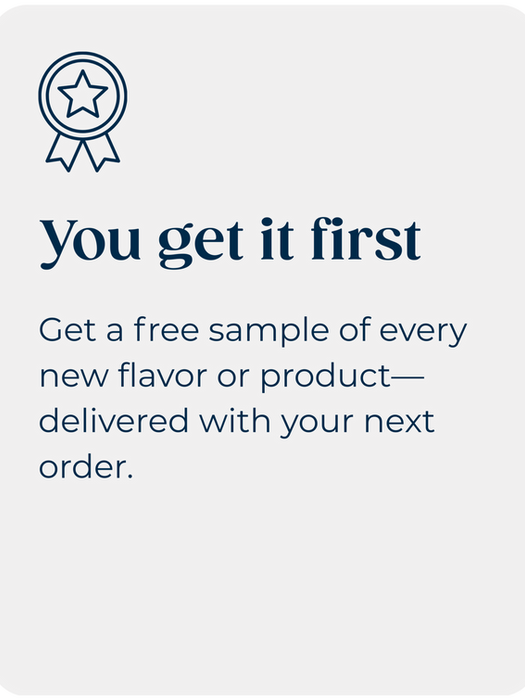 ✔ Free sample of every new flavor or product—delivered with your next order.